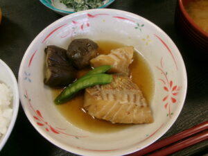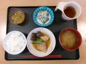 ケアハウスのお昼は、赤魚の煮つけでした。