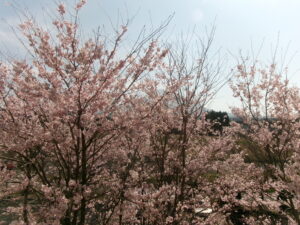 大山のふもとの駐車場の桜です。天気も良く、とても綺麗に咲き乱れております。