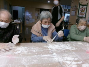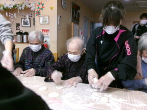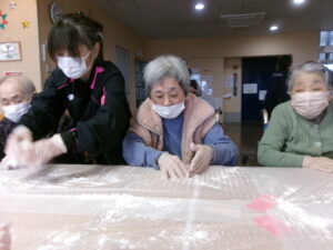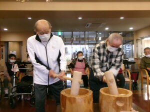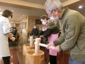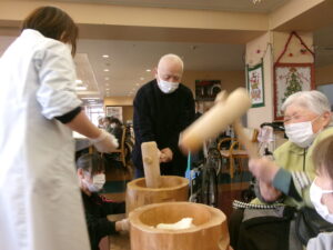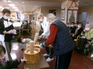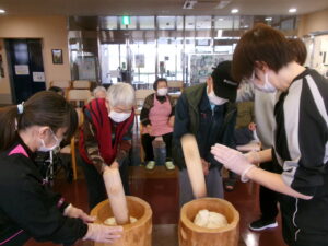 年末年始の風物詩、餅つき。最近ではなかなか見なくなりましたが、実際に自分たちの手でついてみると、大変だけど、楽しい! そしてつきたての餅は、たまらなくおいしい!! 慣れないリズムでもいい、お餅をつくことでみんなが笑顔になれた寒い冬の一日でした。さて、餅つきはまた一年後。来年もみなさまが健やかに過ごせますように!